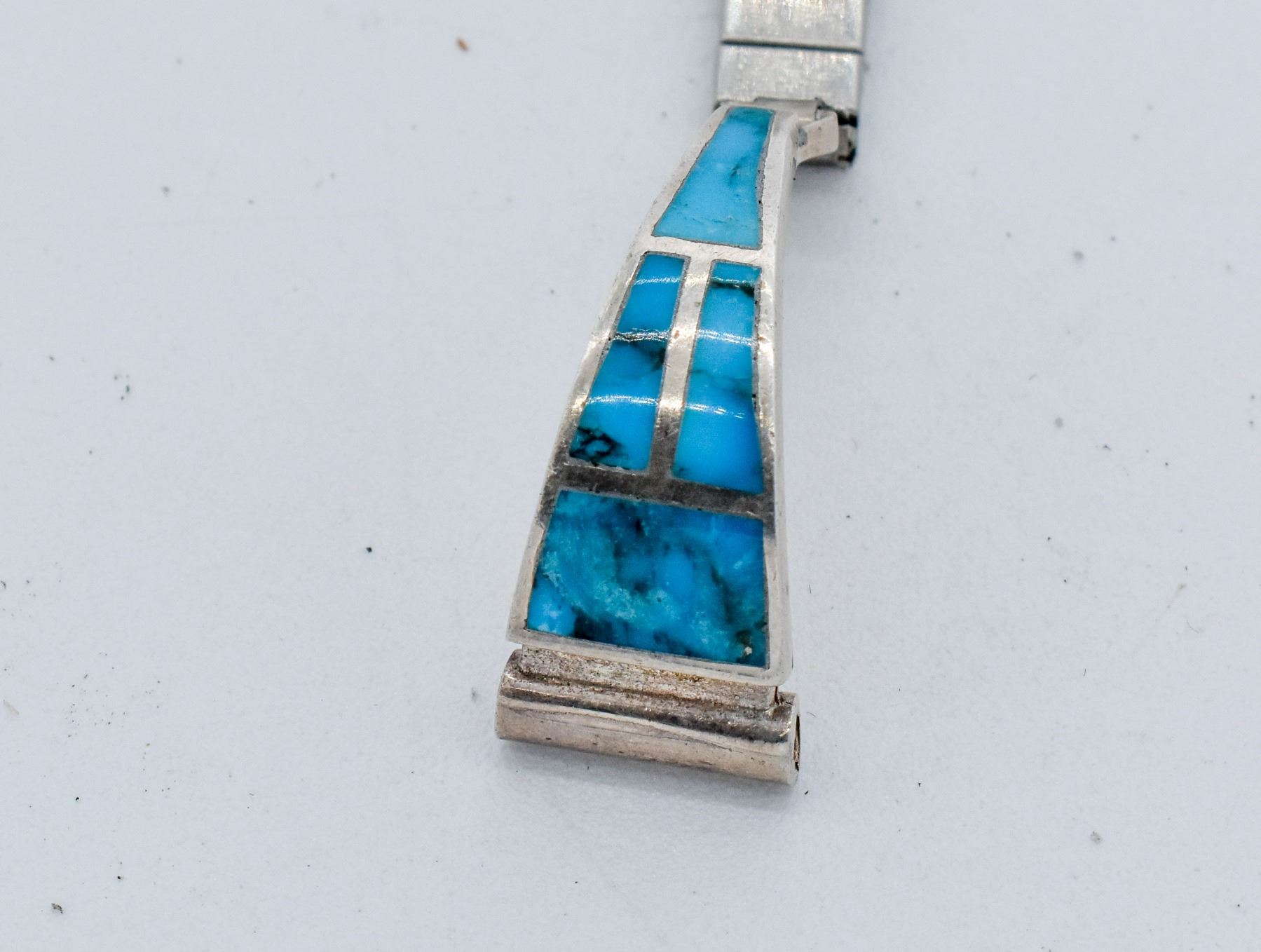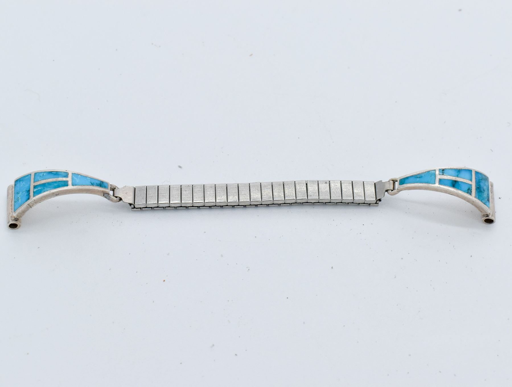 Native American Navajo Sterling Inlay Turquoise Watch Band, tips measure 1.25''L