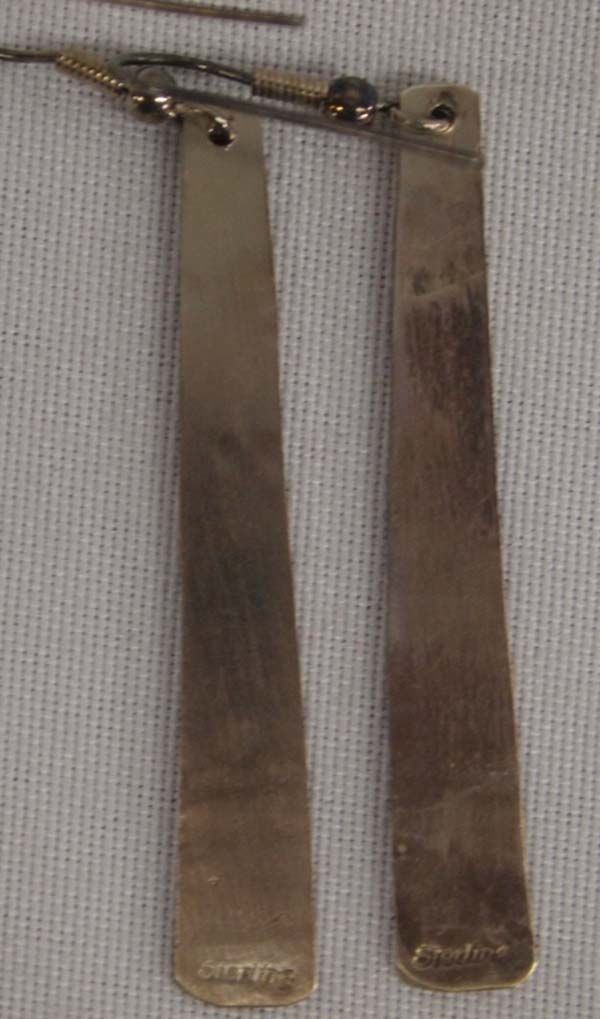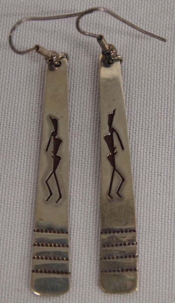 Navajo Sterling Kokopelli Earrings, measure 2''L x .25''W, stamped sterling, 6.18g in total wt.