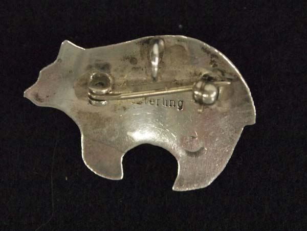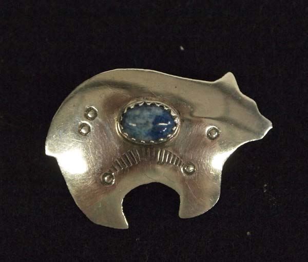 Native American Navajo Sterling Lapis Bear Pin Pendant, measures 7/8''W x 1.25''L, stamped sterling, 2.6g in total wt.