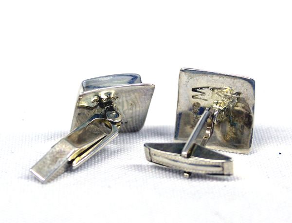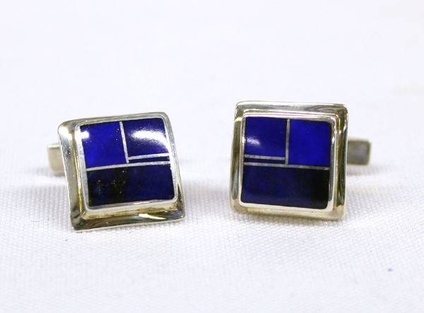 Navajo Sterling Lapis Cufflinks, channel inlay, .5'' square, hallmarked