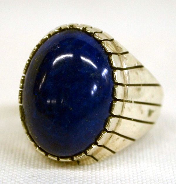 Navajo Sterling Lapis Ring, Size 11 1/2. 1''x .5'' stone. Stamped sterling. Lapis Lazuli is listed as the traditional birthstone for December. Lapis is said to strengthen total awareness, creativity, ESP, skeleton, thyroid, and helps to expand viewpoint. It is believed to improve sleep and cure insomnia.