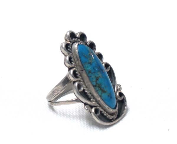 Native American Navajo Sterling Silver and Morenci Turquoise Ring, Size 8.25, measures 1.25'' x 1''