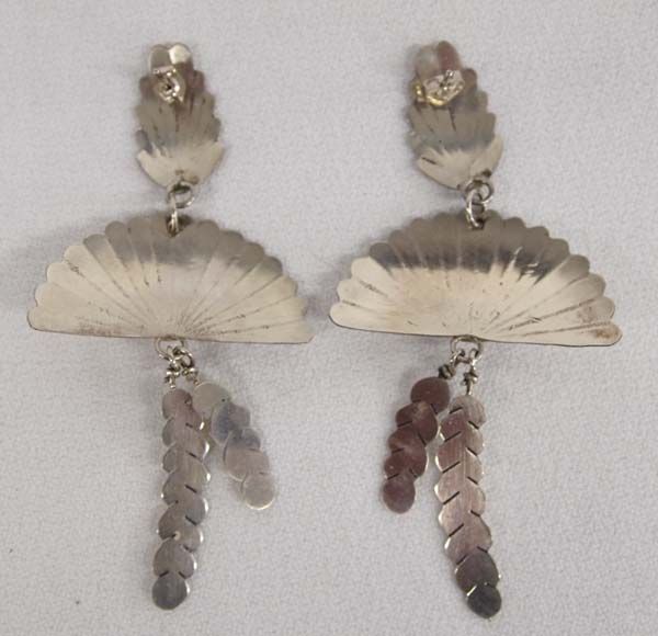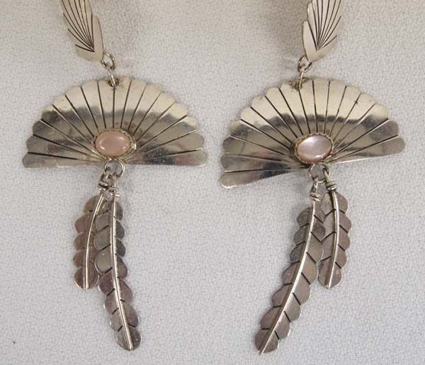 Navajo Sterling Mother of Pearl Earrings, measure 3.25''L x 2.5''W, 10g in total wt.