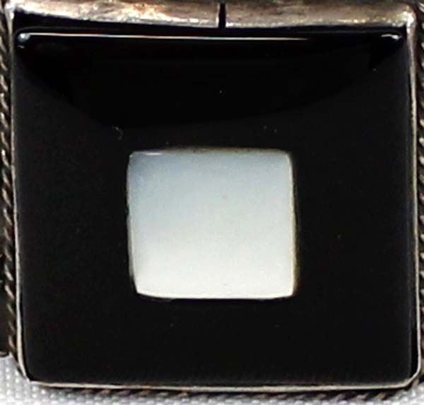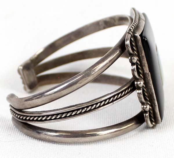 Native American Navajo Sterling Mother of Pearl & Onyx Bracelet, inside measures 6'' which includes the gap, top measures 1 3/8'' x 1.5'', total gram wt. 43.1