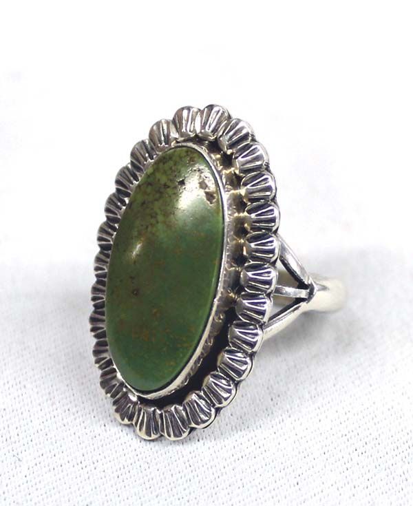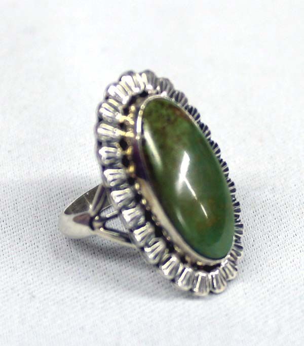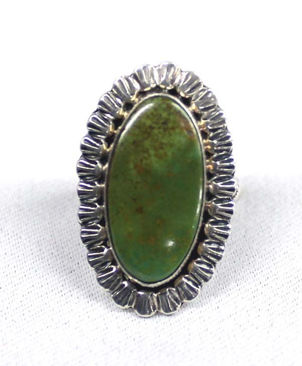 Navajo Sterling Nevada Green Turquoise Ring Sz 6.5, measures 1.25''L x .75''W, & weighs 7.9gr