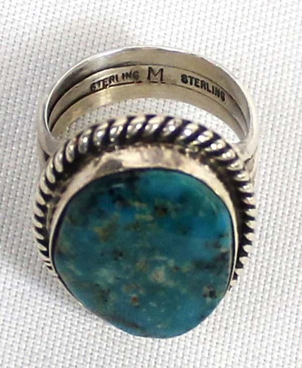 Native American Navajo Sterling & Nevada Green Turquoise Ring, size 10, measures 1.25''L, stamped sterling and hallmarked B, gorgeous turquoise