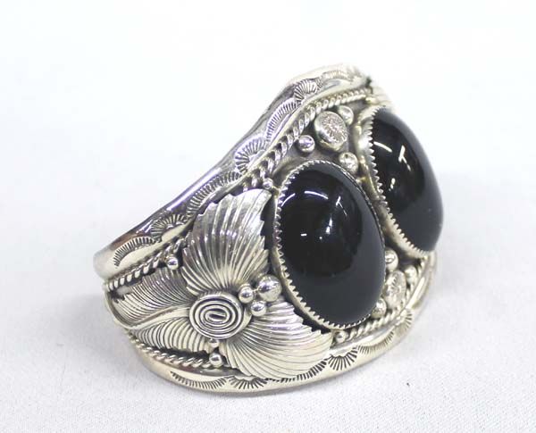 Navajo Sterling Silver & Onyx Bracelet by Joe Delgarito, inside measurement 6 7/8'' includes opening & measures approx 2 1/8''W & measures approx 80.9gr