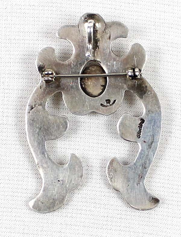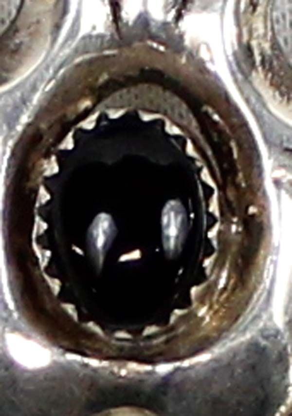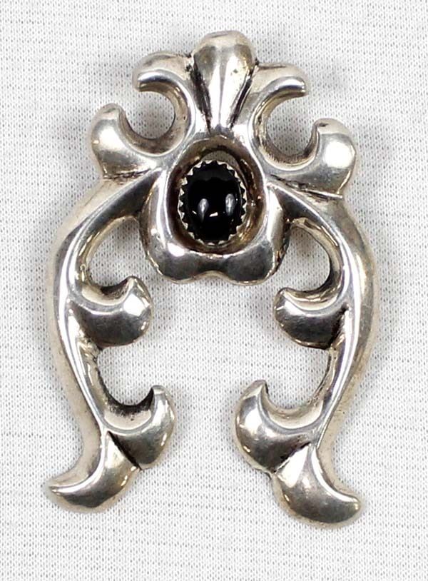Native American Navajo Sterling Onyx Naja Pin Pendant, measures 2'' x 1.5'' and is hallmarked, 22.94gtw