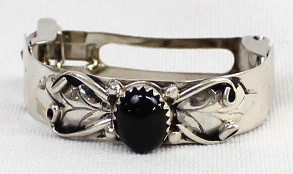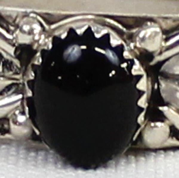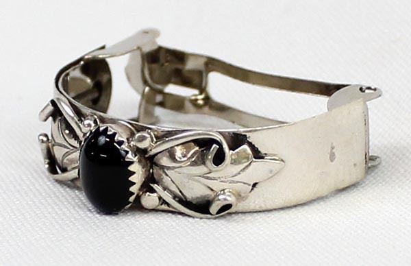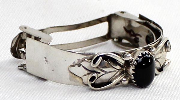 Native American Navajo Sterling Onyx Ponytail Holder, measures 1.5'' across
