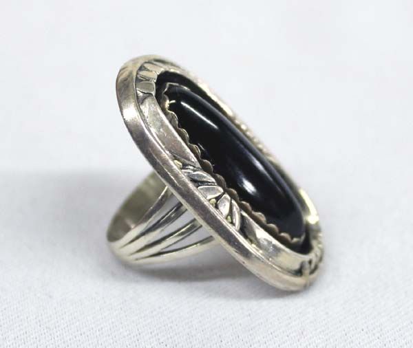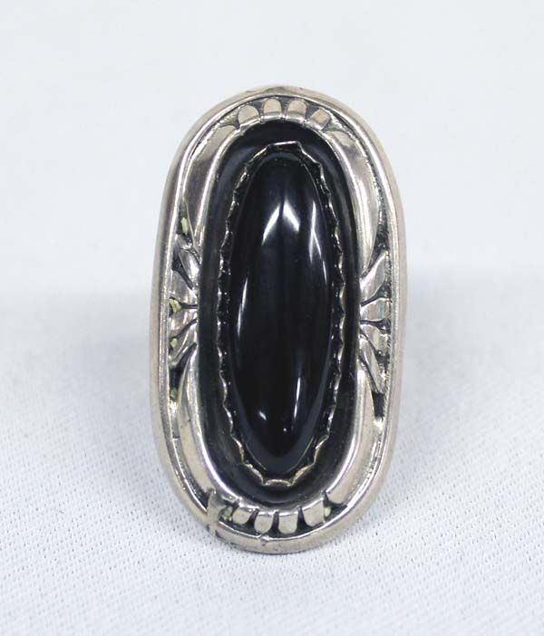 Navajo Sterling Onyx Ring by Daniel Martinez Sz6.5, 1.75''L x .75''W. Ring is Hallmarked DM for Daniel Martinez, & weighs 10.8gr