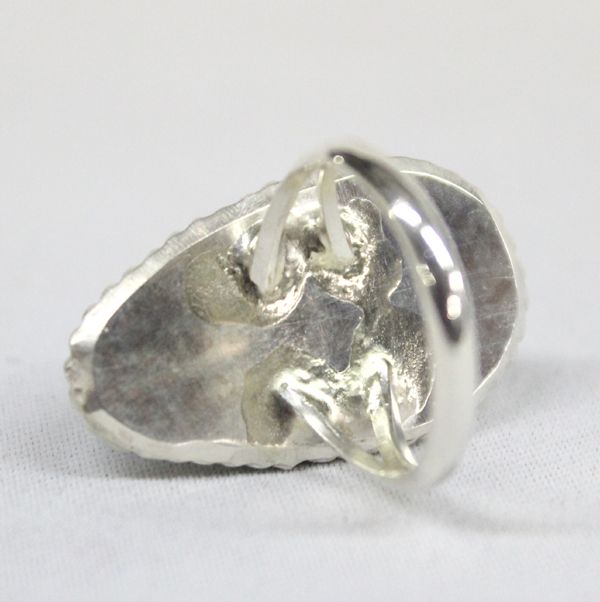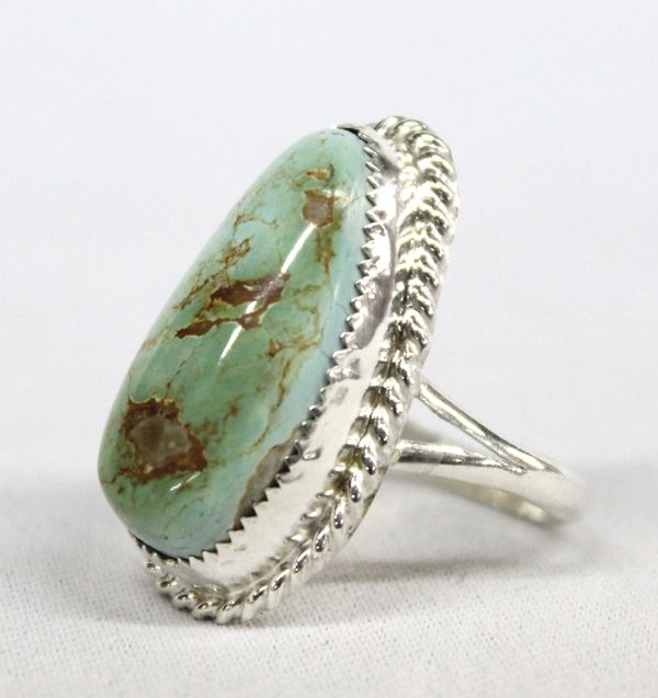 Navajo Sterling Pilot Mt. Turquoise Ring, Size 8, measures 1 1/8''L x 5/8''W, beautiful sterling silver set with a green Pilot Mountain Turquoise cabochon (measures 3/8'' x 1''L), 8.79g in total wt.