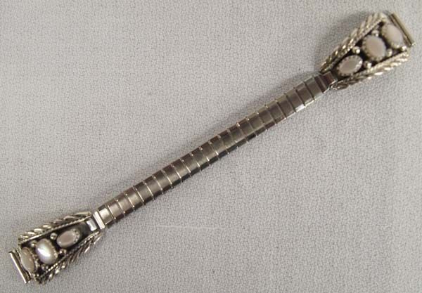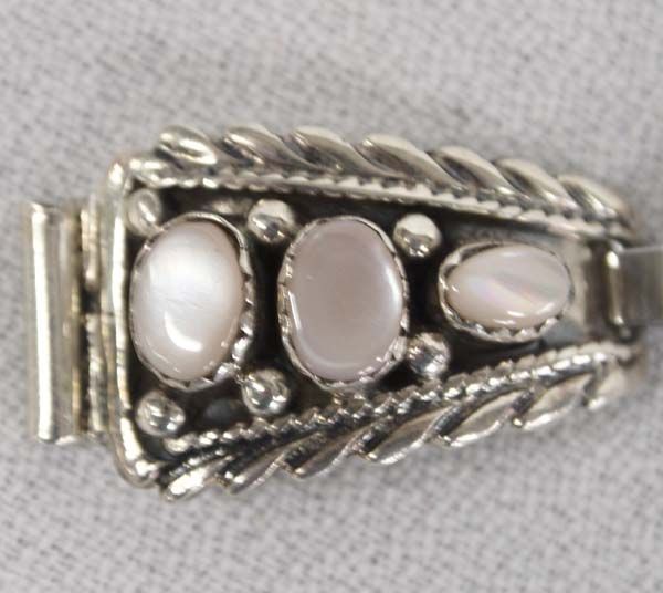 Navajo Sterling Pink Mother of Pearl Watchband, tips measure 1''L x .5''W, 12.16g in total wt.