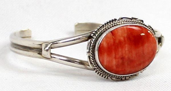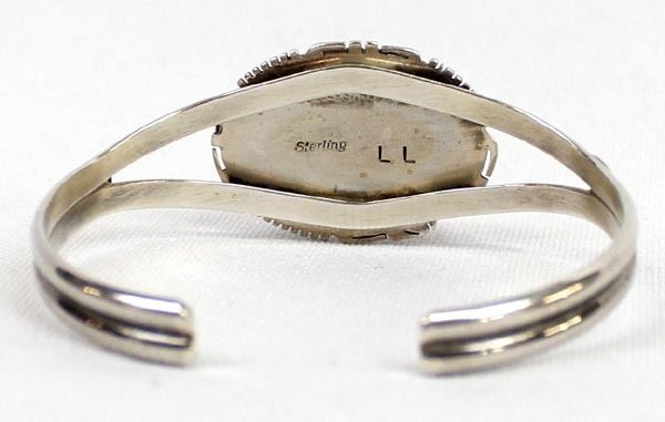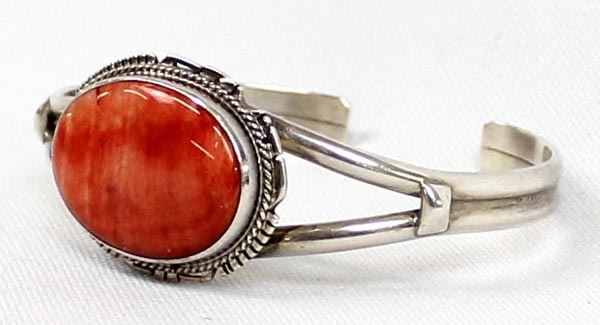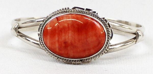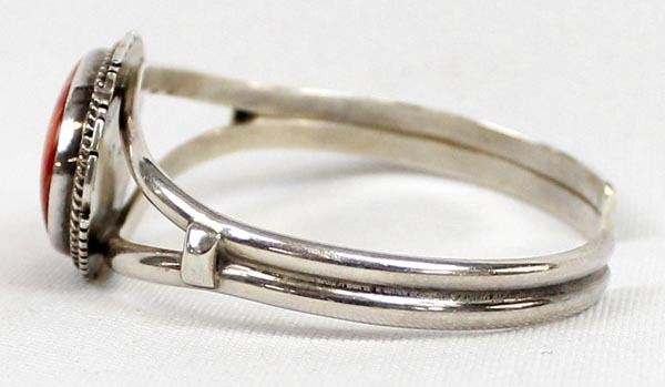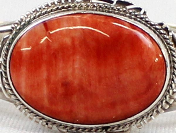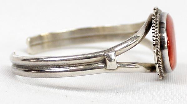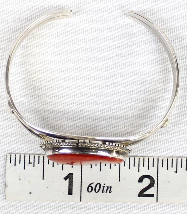 Native American Navajo Sterling Red Shell Cuff Bracelet, inside measures 6.25'' which includes the gap x .75''W, hallmarked LL and stamped sterling