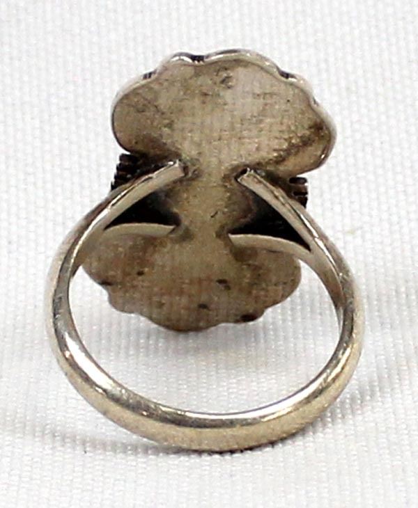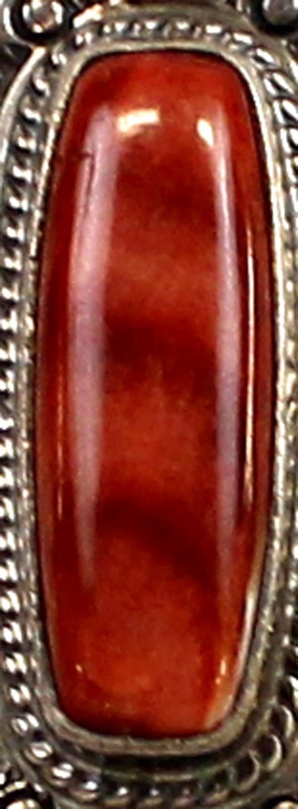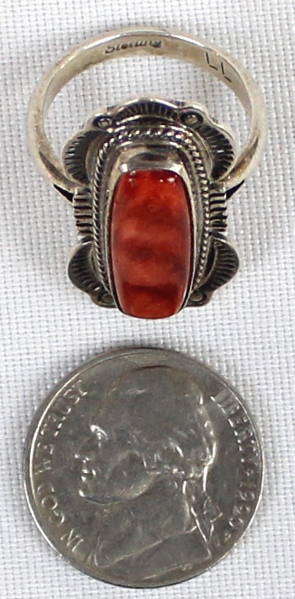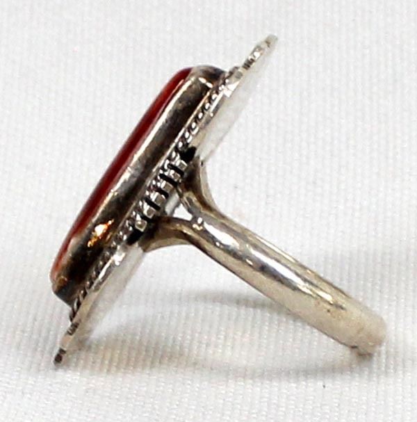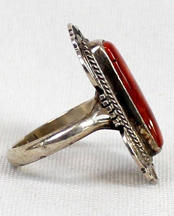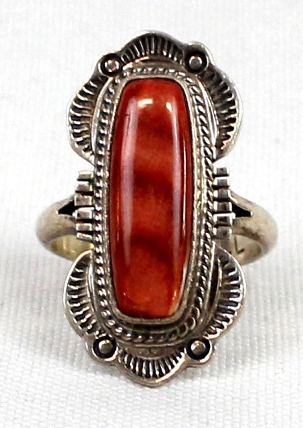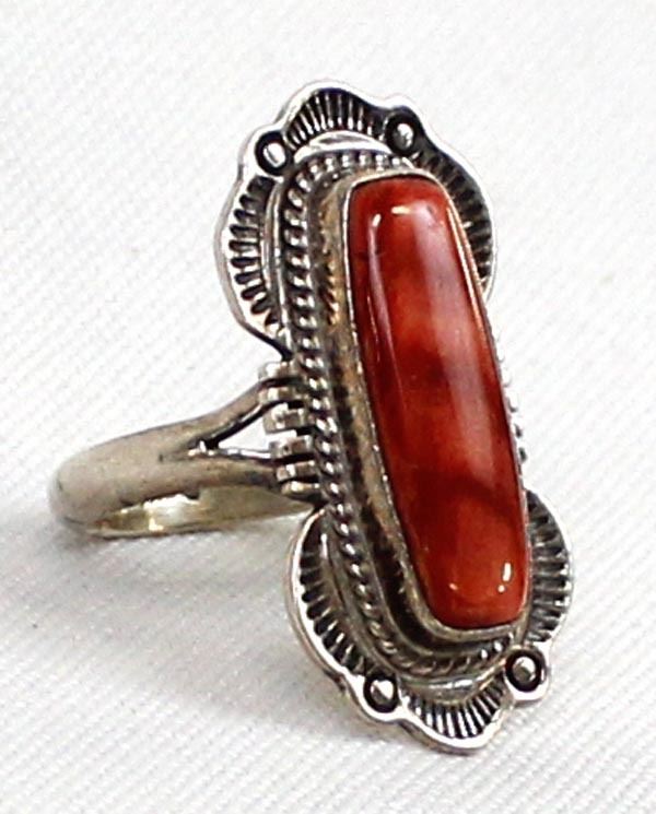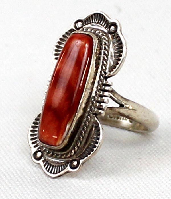 Native American Navajo Sterling Red Shell Ring, Size 8, measures 1 1/8'' x .25''