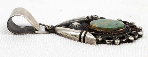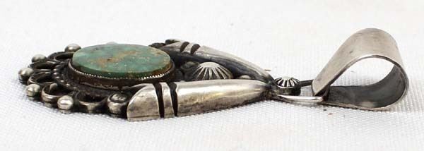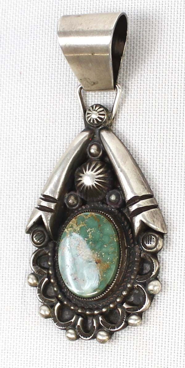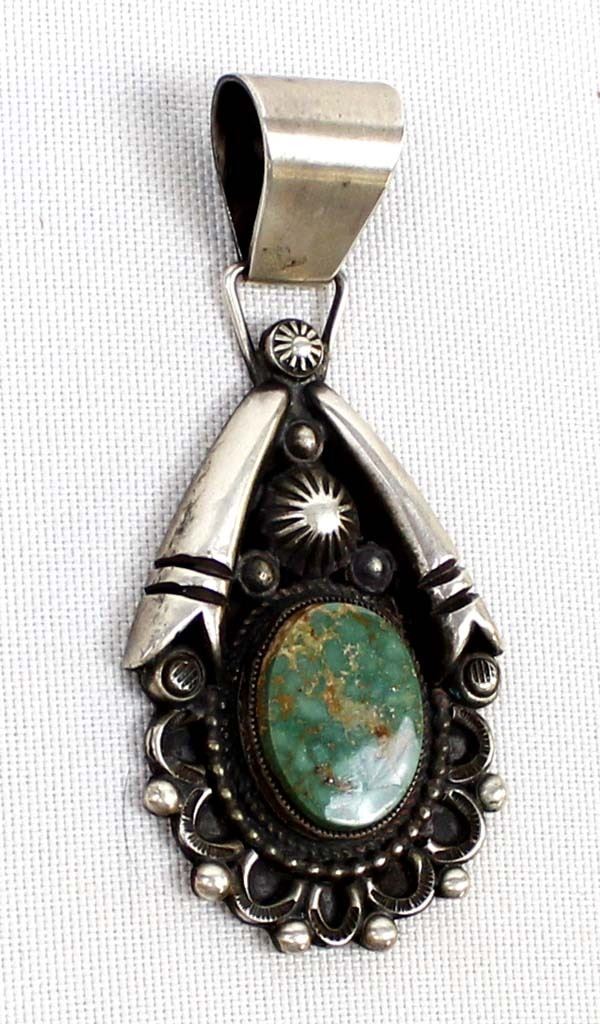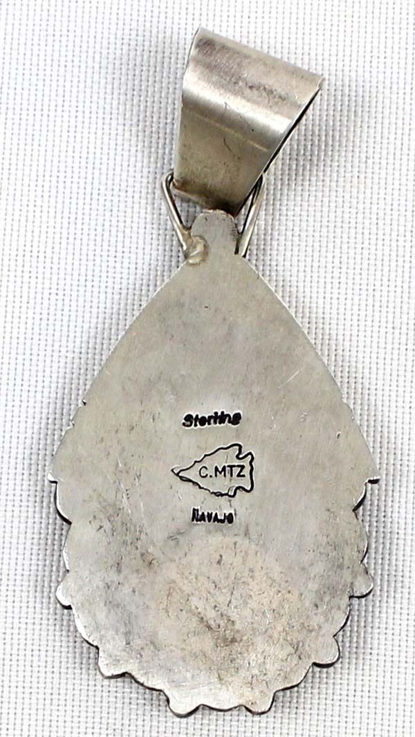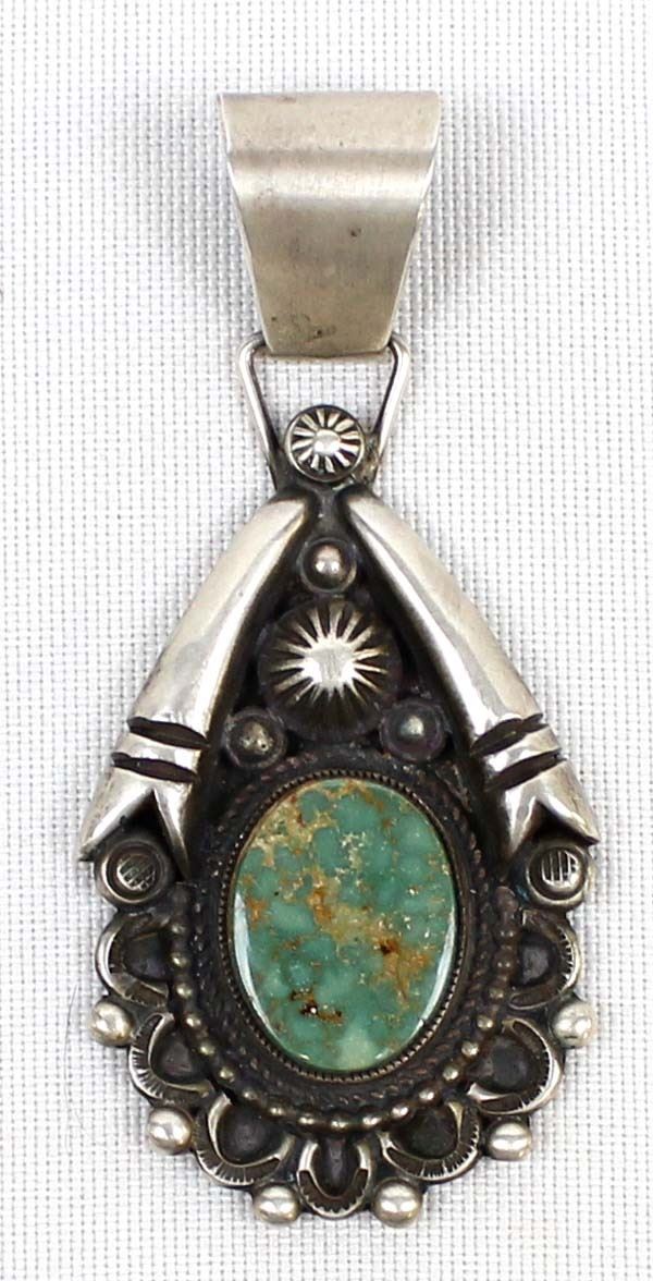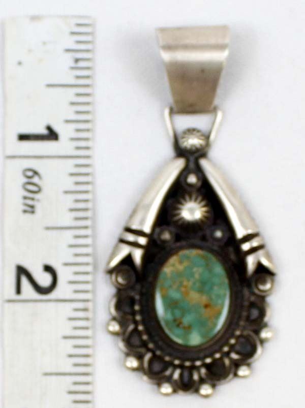 Beautiful Native American Navajo Sterling Royston Turquoise Pendant by Calvin Martinez, measures 2.5''L x 1.25''W, nice wide bale, stamped sterling, Navajo, and hallmarked, 22.73 gtw