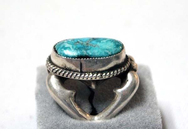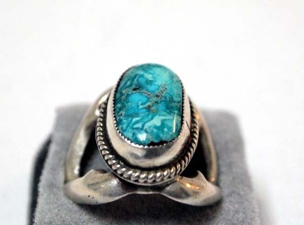 Navajo Sterling Sand Cast Turquoise Ring, Size 8