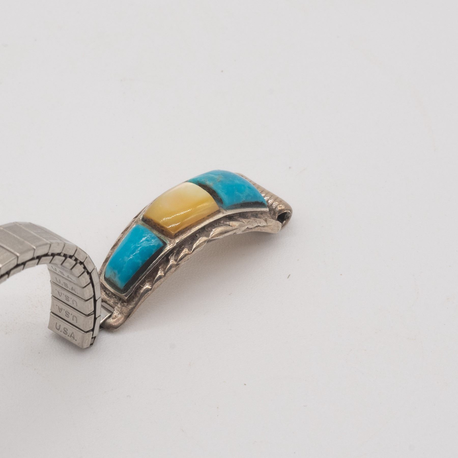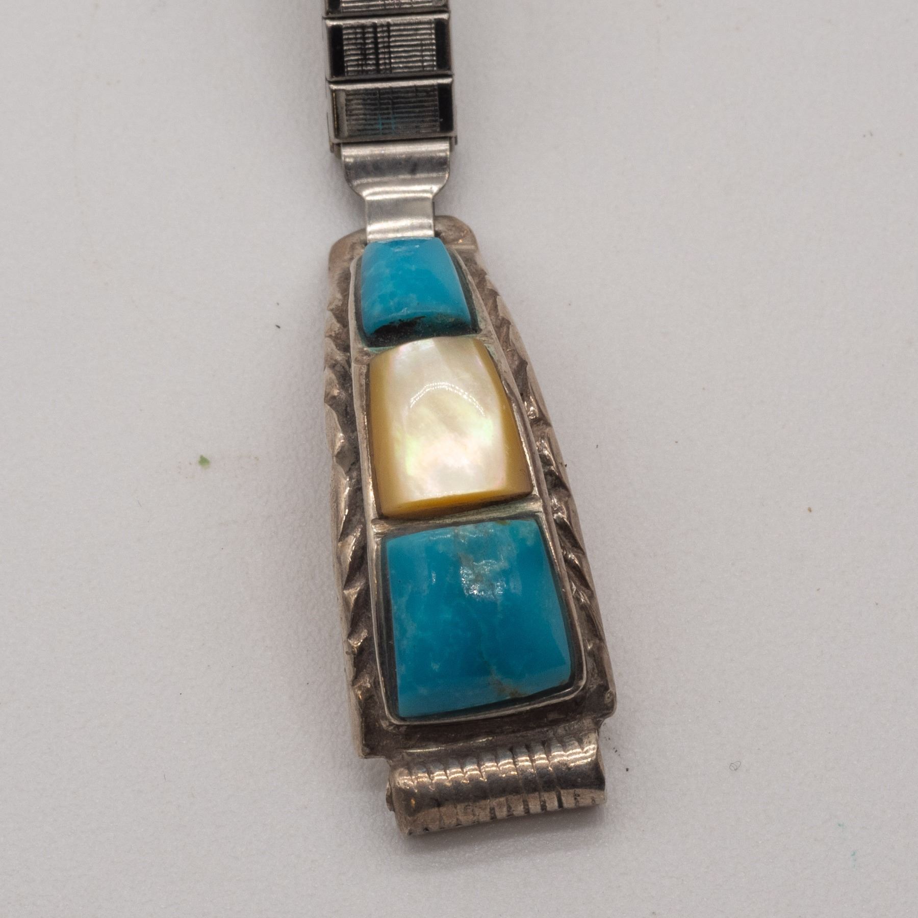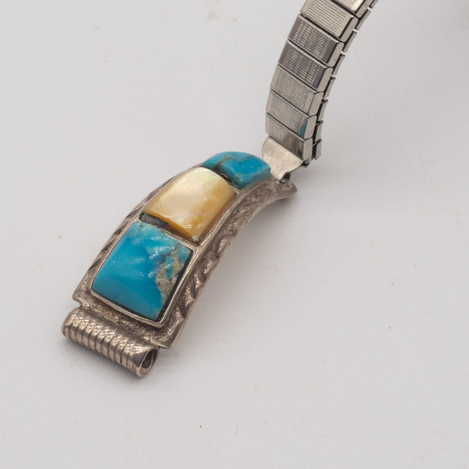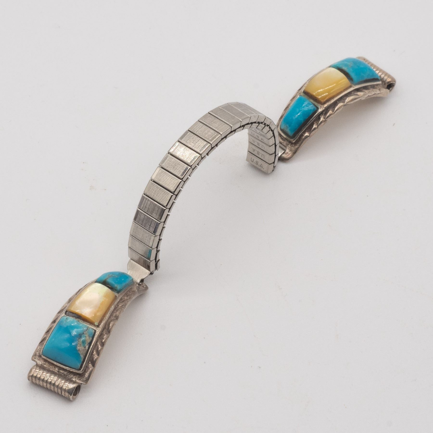 Native American Navajo Sterling Gold Lip Shell & Turquoise Watch Band, tips measure .25'' x .5''