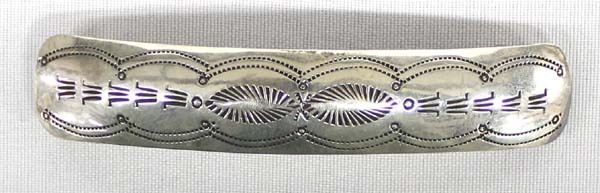 Native American Navajo Sterling Silver Barrette, stamped sterling, measures .75'' x 3.5'', beautiful stampwork