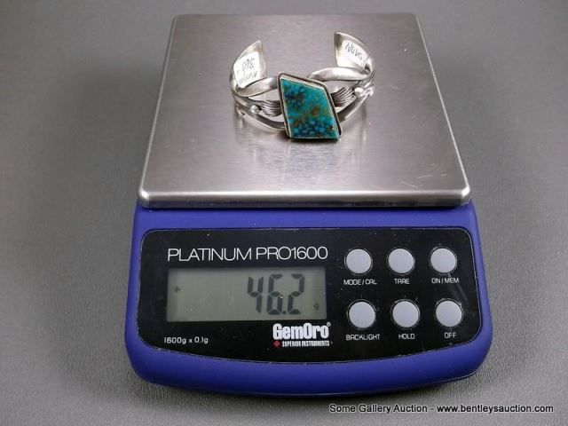 Navajo Sterling Silver Bracelet w/ Turquoise Kingman Stone-Marked M Weight: 46.2 Grams Retail: $360.