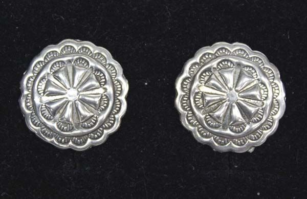 Navajo Sterling Silver Concho Cufflinks, measure 7/8''D, beautifully hand stamped, 6.8g in total wt.