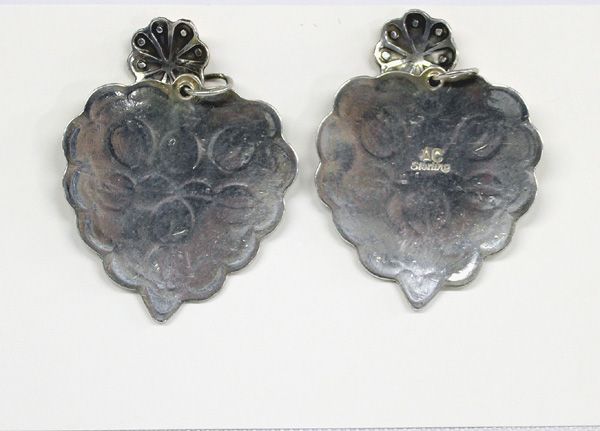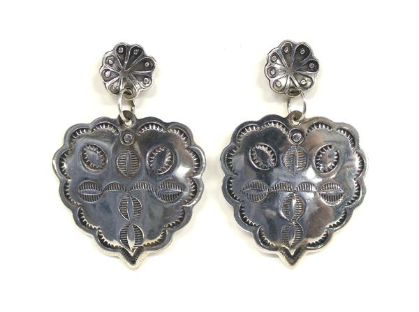 Native American Navajo Sterling Silver Concho Earrings by Albert Cleveland, measures approx. 1.75''L x 1.5''W. Pierced Earrings are hallmarked AC sterling for artist Albert Cleveland