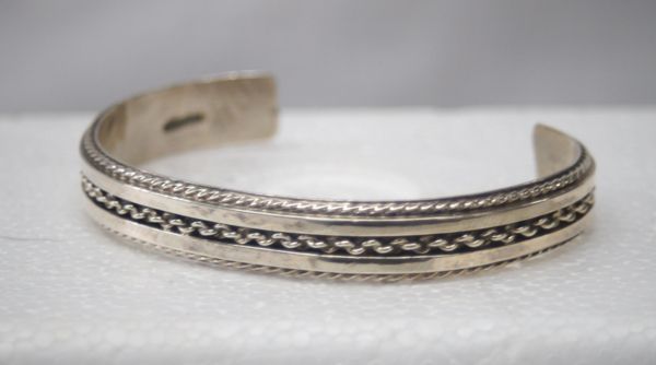 Navajo Sterling Silver Cuff Bracelet, inside measures 6.5'' which includes opening x 3/8''W, stamped sterling, 24.1g in total wt.