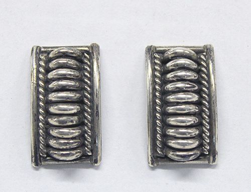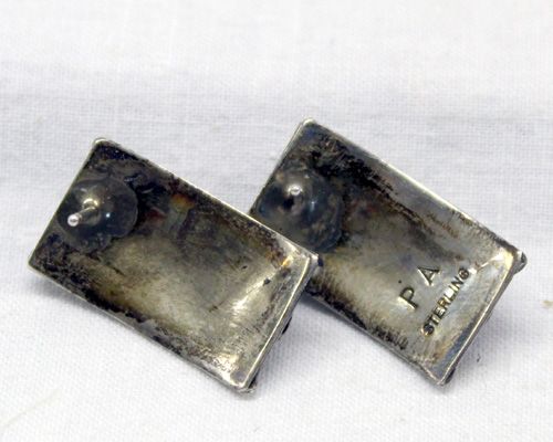 Navajo Sterling Silver Earrings, Apachito. Beautiful sterling earrings from the silversmith, Priscilla Apachito from the 1980's. Signed by the artist's hallmark ''PA'', measuring 3/4'' x 1/2''.