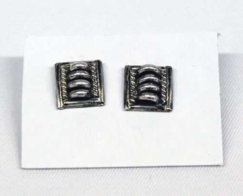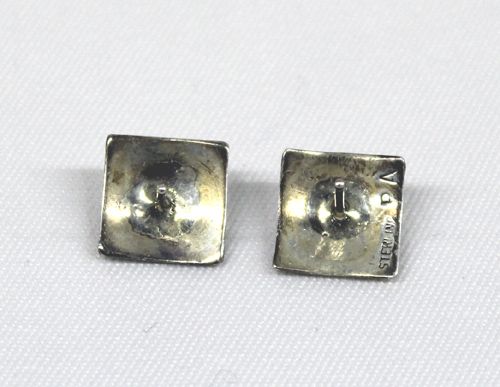 Navajo Sterling Silver Earrings by Apachito. Petite sterling silver earrings, signed by artist Priscilla Apachito, ''PA'', measuring 1/2'' x 1/2''.