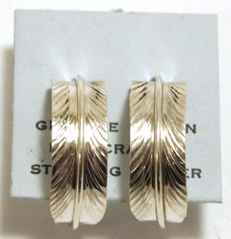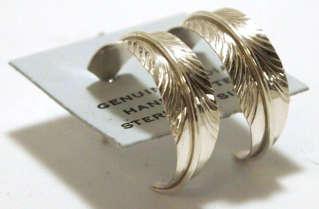 Navajo Sterling Silver Feather Half-Ring Post Earrings - Chris Charley
