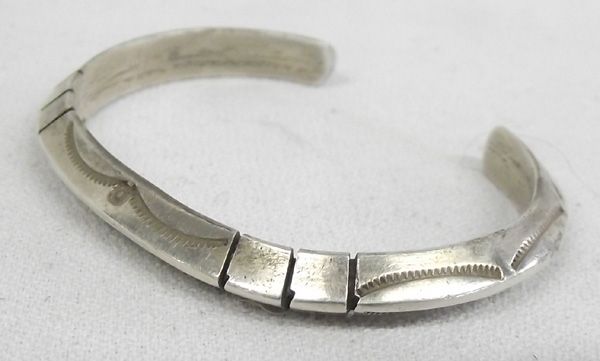 Navajo Sterling Silver Hand Forged Bangle Bracelet. Early example of fine hand forged bracelet. Measures 6'' inside including opening x 0.25'' wide.