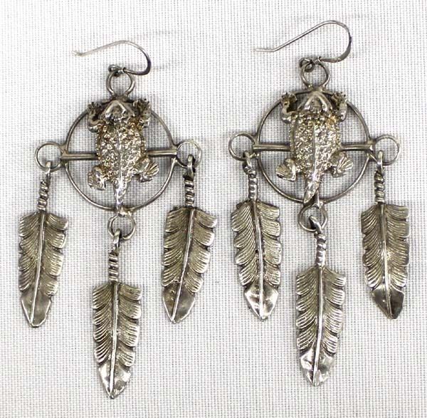 Native American Navajo Sterling Silver Horned Toad Earrings, measures 2.5'' x 1.5'', stamped .925, 19.06gtw