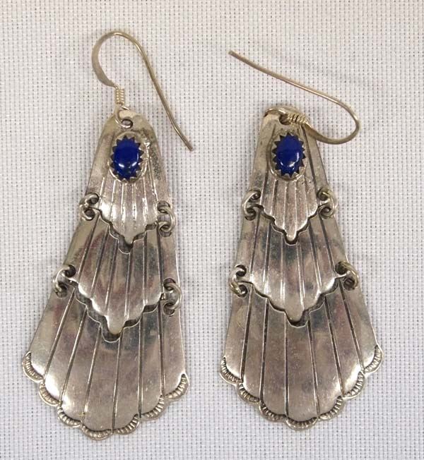 Native American Navajo Sterling Silver Lapis Earrings, measure 2''L x 1''W, 7.2g in total wt.
