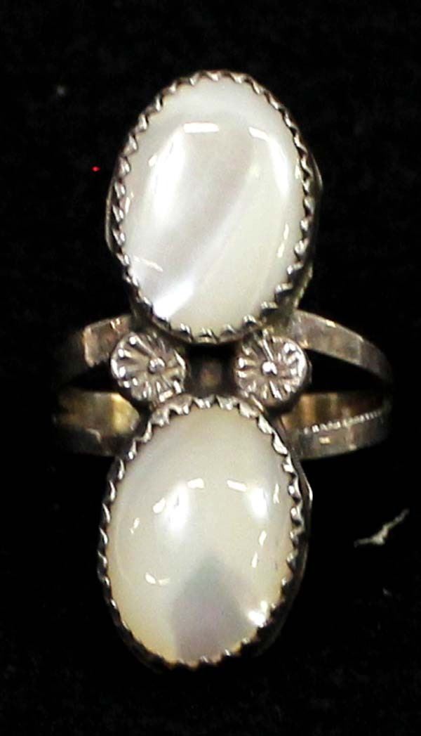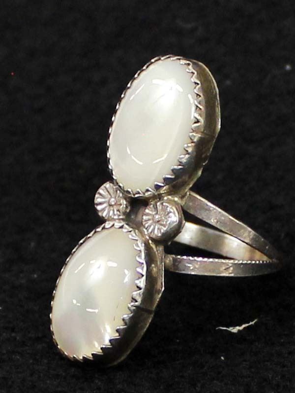 Navajo Sterling Silver Mother-of-Pearl Ring. Size 7 1/2.
