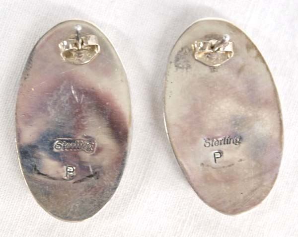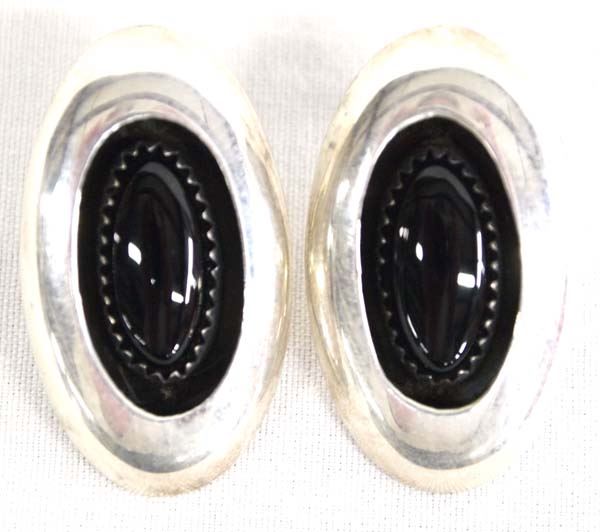Native American Navajo Sterling Silver Onyx Earrings by Jimmie Patterson, hallmarked P and stamped sterling, measures 1.25''L x .75''W, 6.2g in total wt.