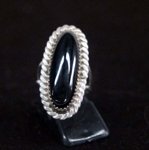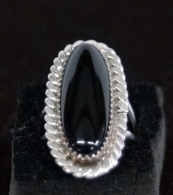 Native American Navajo Sterling Silver & Onyx Ring. This ring is a size 6 1/2 and measures approx. 1.5 x .75''. Total weight is 6g.