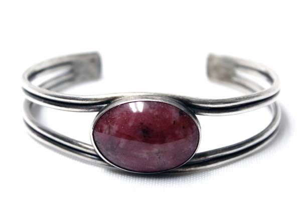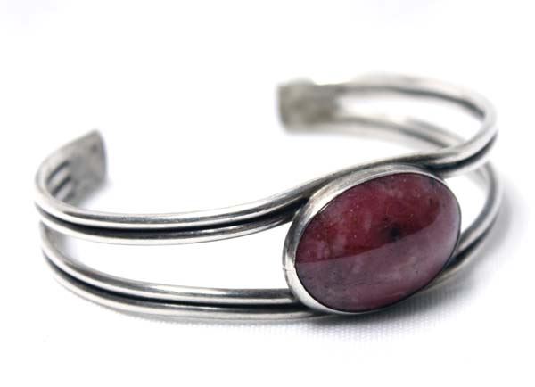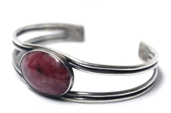 Beautiful Native American Navajo Sterling Silver Rhodonite Cuff Bracelet, inside measures 6.5'' which includes opening x .75''W, 27.5g in total wt.