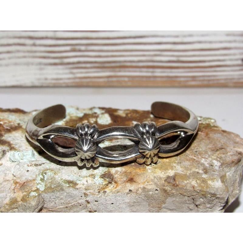 Navajo Sterling Silver Sand Cast Cuff Bracelet Bennet Yazzie Native Stacker