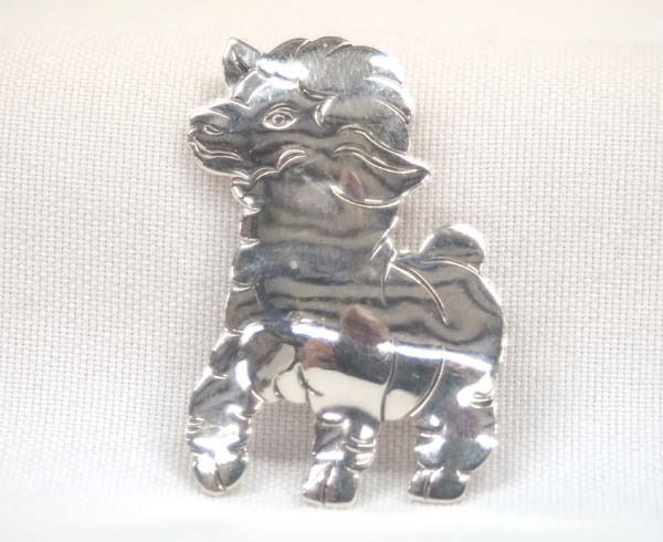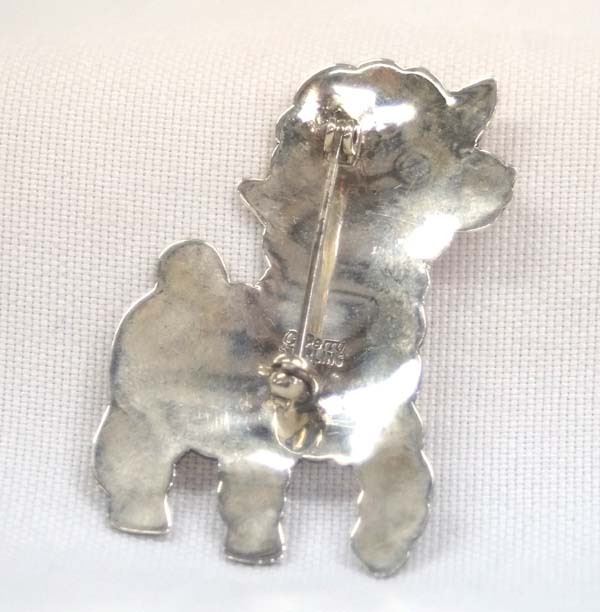 Native American Navajo Sterling Silver Figural Sheep Pin by Cecil Perry, hallmarked and stamped sterling