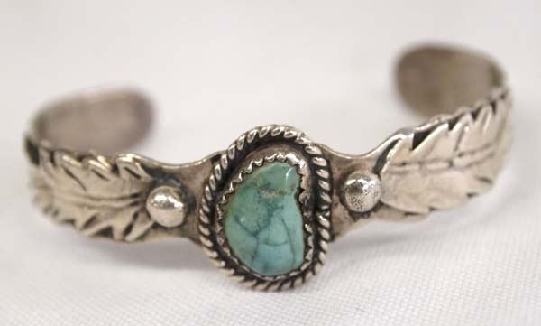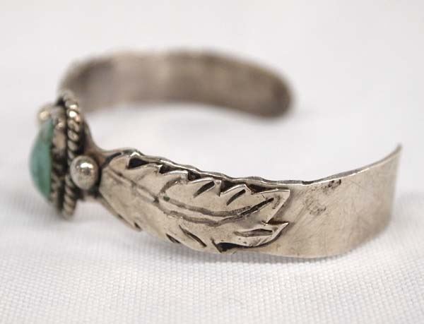 Native American Navajo Sterling Silver Turquoise Bracelet, inside measures 5.75'' which includes opening x .75''W, has engraved initials inside B.J.B. (not sure if these are artist's initials or owner's), 14.95g in total wt.