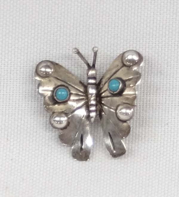 Native American Navajo Sterling Silver Turquoise Butterfly Pin. Sweet item measures approx. 1''L x 1'W. Weighs 2.5 grams.