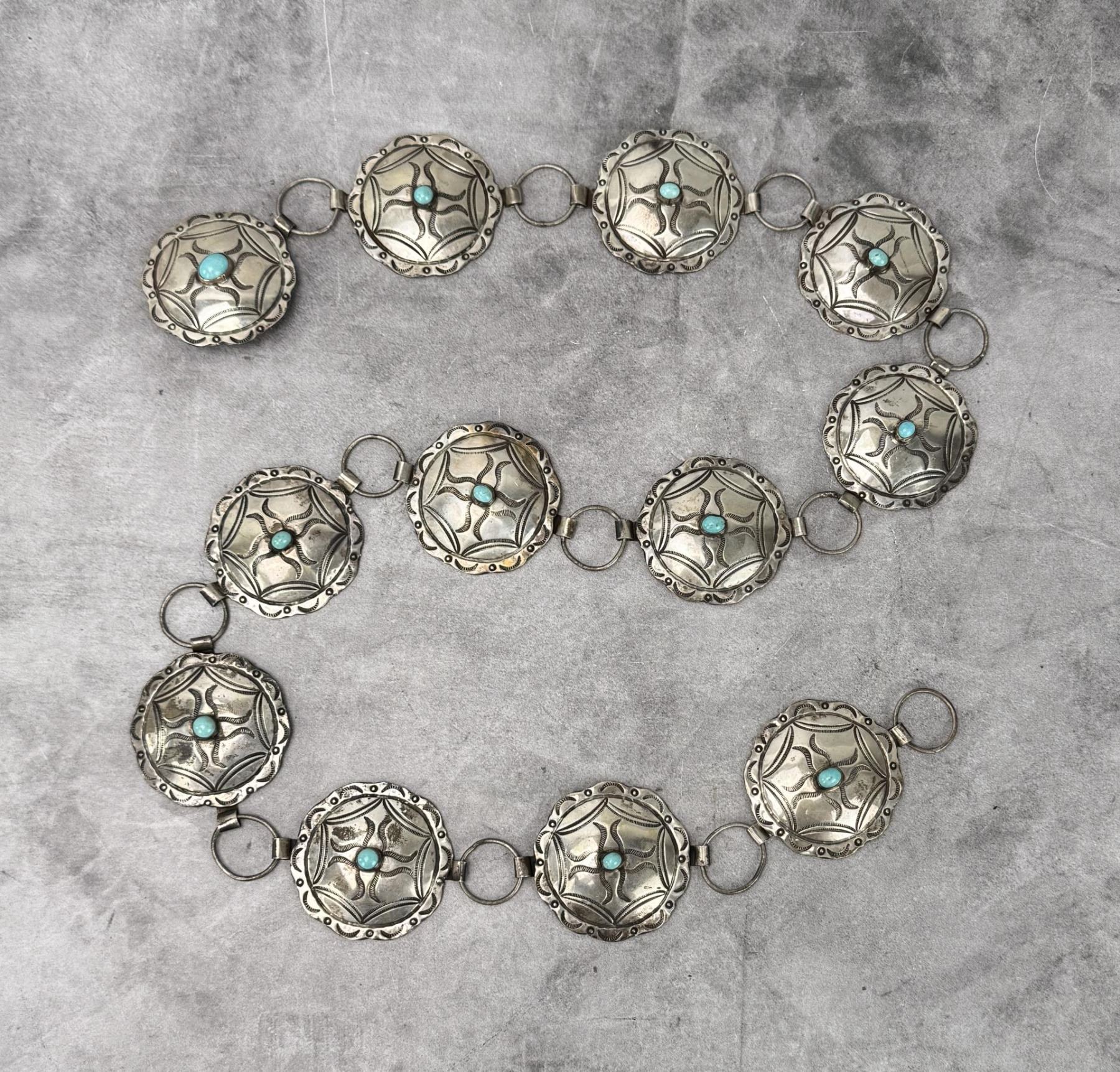Nice Old Pawn belt. 2" diameter conchos. 38 1/2" long. 259 grams.