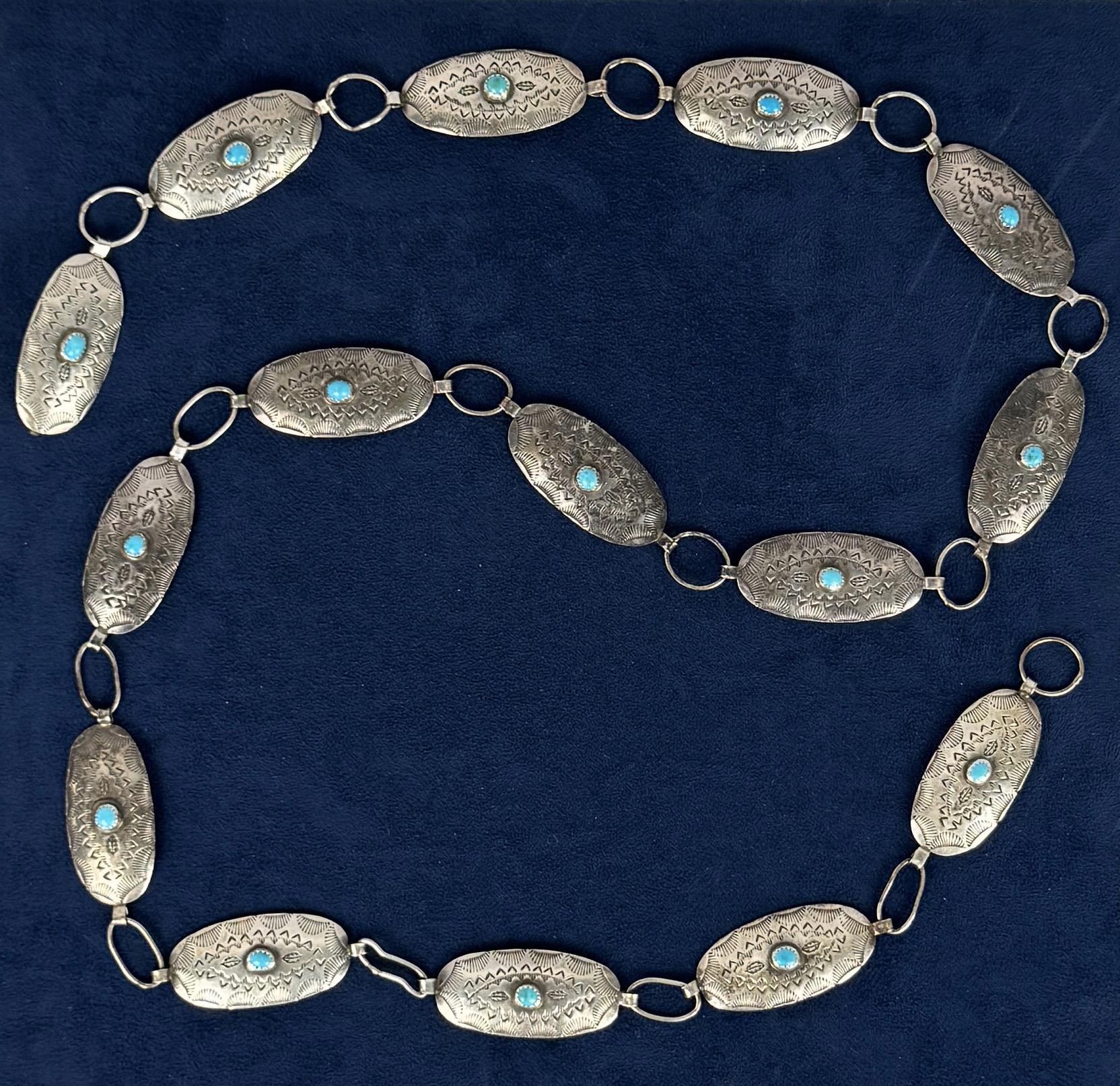 39 3/4" long overall. Conchos measure 1 3/4" long. 80.65 grams.