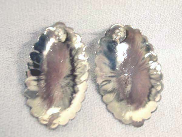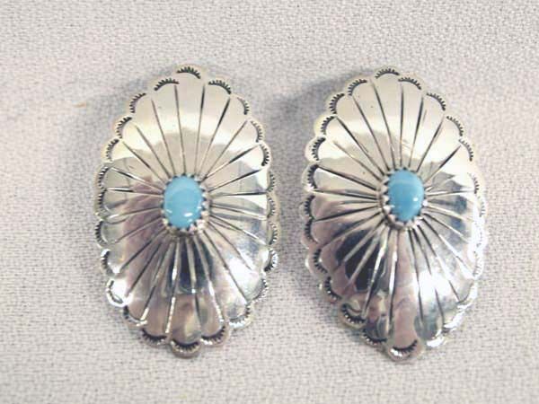 Navajo Sterling Silver Turquoise Concho Earrings, measure 1.5''L x 1''W, stamped accents, 6.39g in total wt.