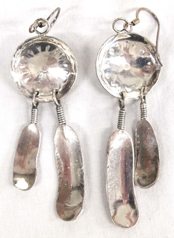 Native American Navajo Sterling Silver Turquoise Concho Earrings, measures 2.25''L x .75''W, 9.4g in total wt.