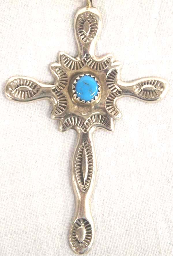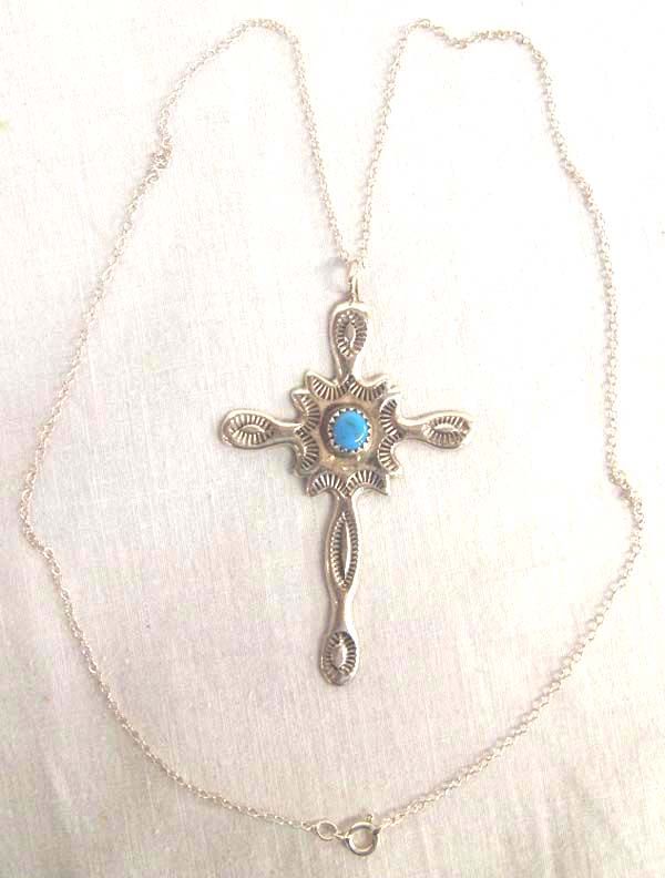 Navajo Sterling Silver & Turquoise Cross Necklace & Chain. This piece measures approx.2.5'' in length and is on an 18'' chain, 8.69g in total wt.
