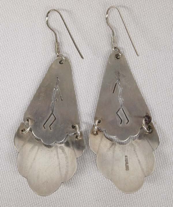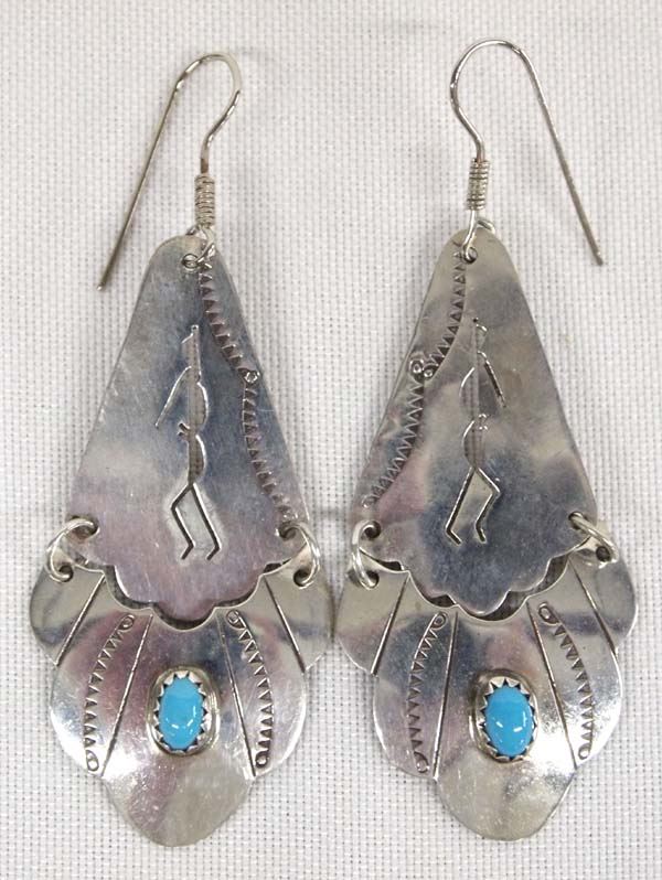Native American Navajo Sterling Silver Turquoise Kokopelli Earrings, measure 2''L x 1''W, 7.42g in total wt.