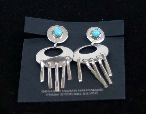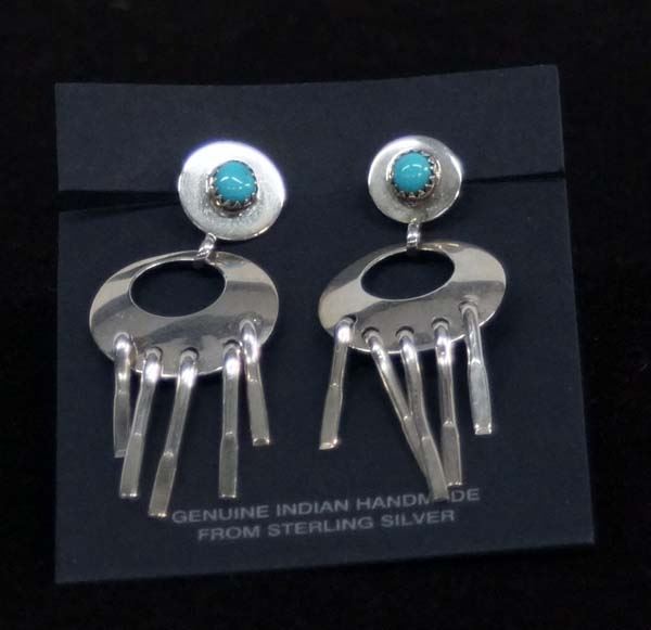 Native American Navajo Sterling Silver Turquoise Earrings, measures 2''L x 1''W, 7.75g in total wt.