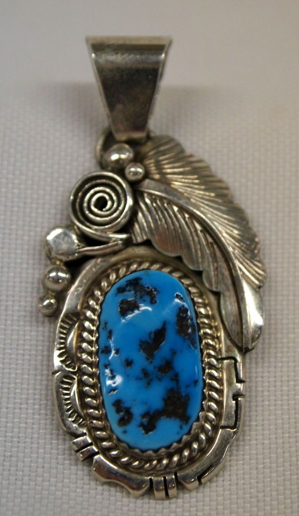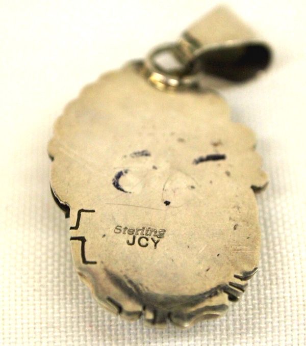 Native American Navajo Sterling Silver & Turquoise Pendant, Signed. Beautiful Native American workmanship in this sterling and polished turquoise nugget pendant. It is signed ''JCY'' ''Sterling''. It measures 2'', including the bail x 1''.