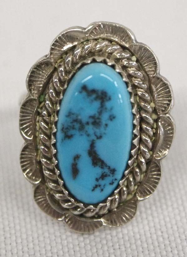 Native American Navajo Sterling Silver Turquoise Ring, Size 6.25, measures 1'' x .75'', hallmarked EP and stamped sterling, 5.4g in total wt.