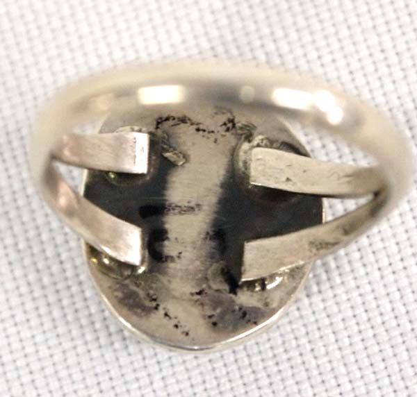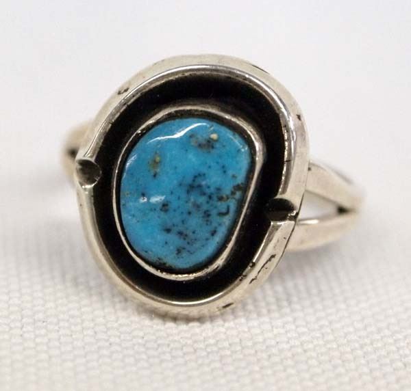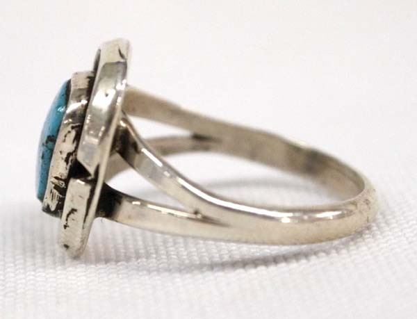 Native American Navajo Sterling Silver Turquoise Ring, Size 6.5, shadowbox design, measures .5'' x .5'', 3.3g in total wt.